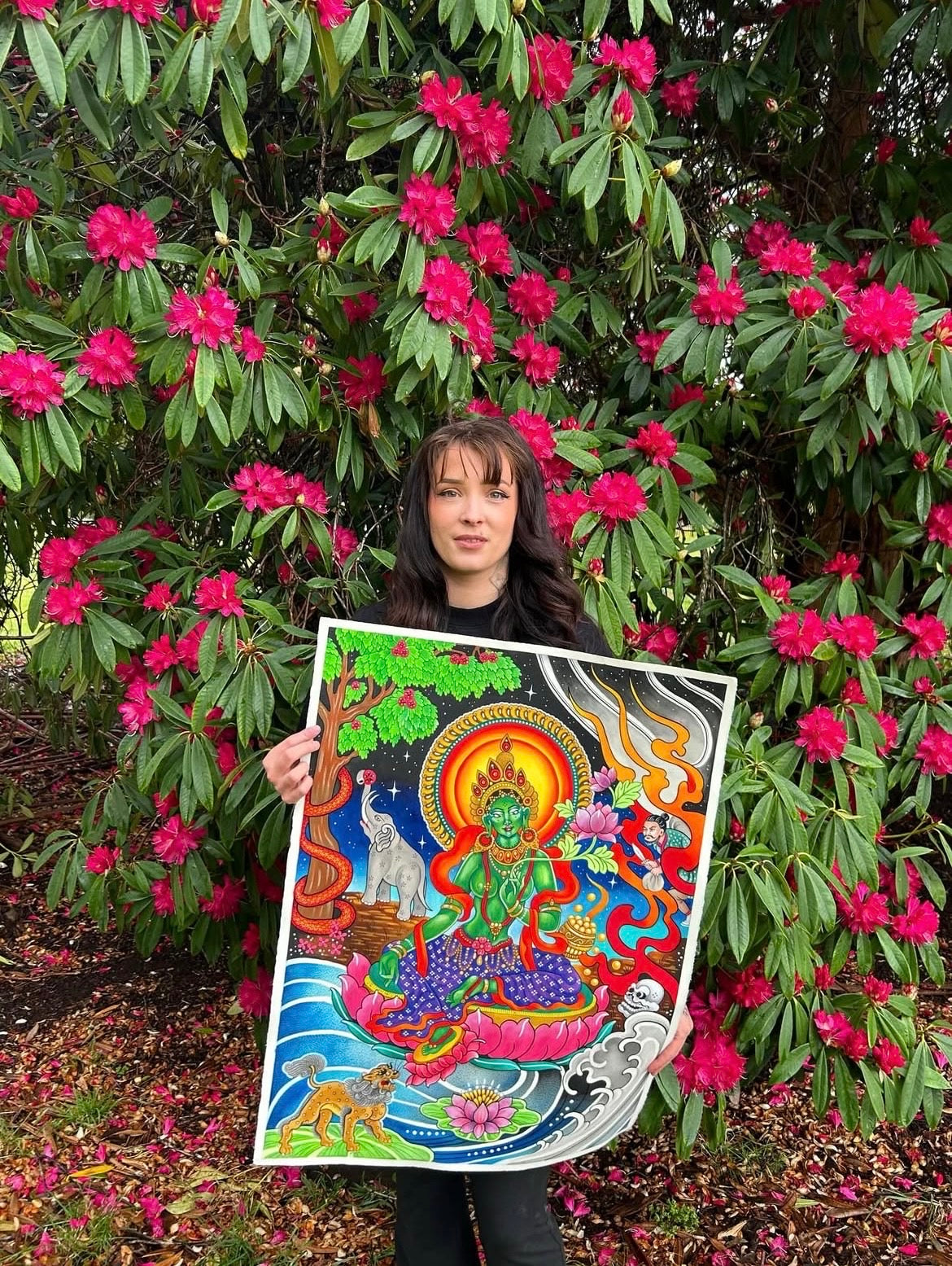 @Huntas.tattoos is an artist known for her bold, highly detailed and precise linework. Her style fuses traditional tattoo influences with sharp, modern composition often featuring fierce figures and a strong sense of symmetry and flow. Her work balances clean execution with raw energy. Hunta’s art carries a powerful visual impact.
