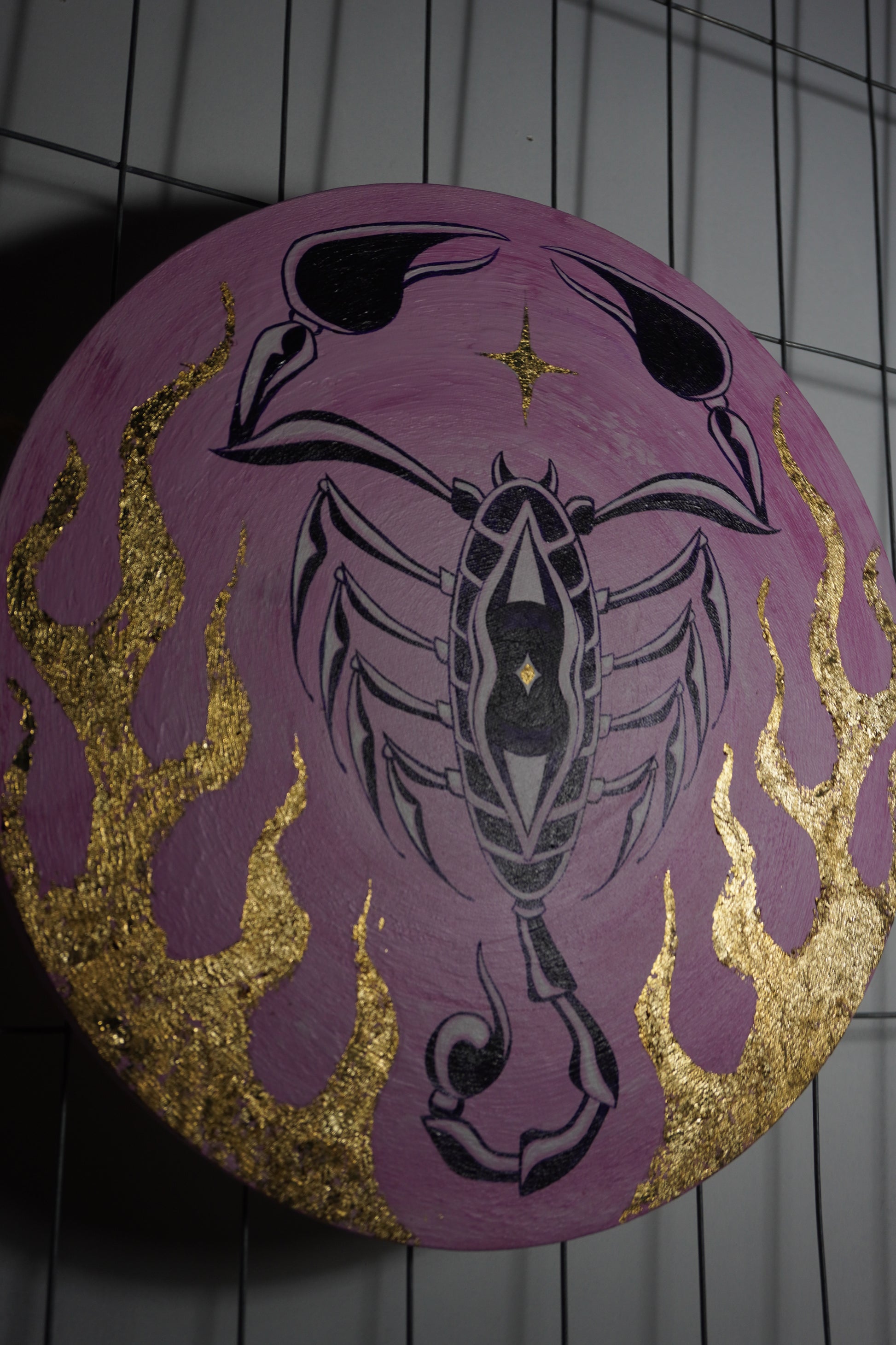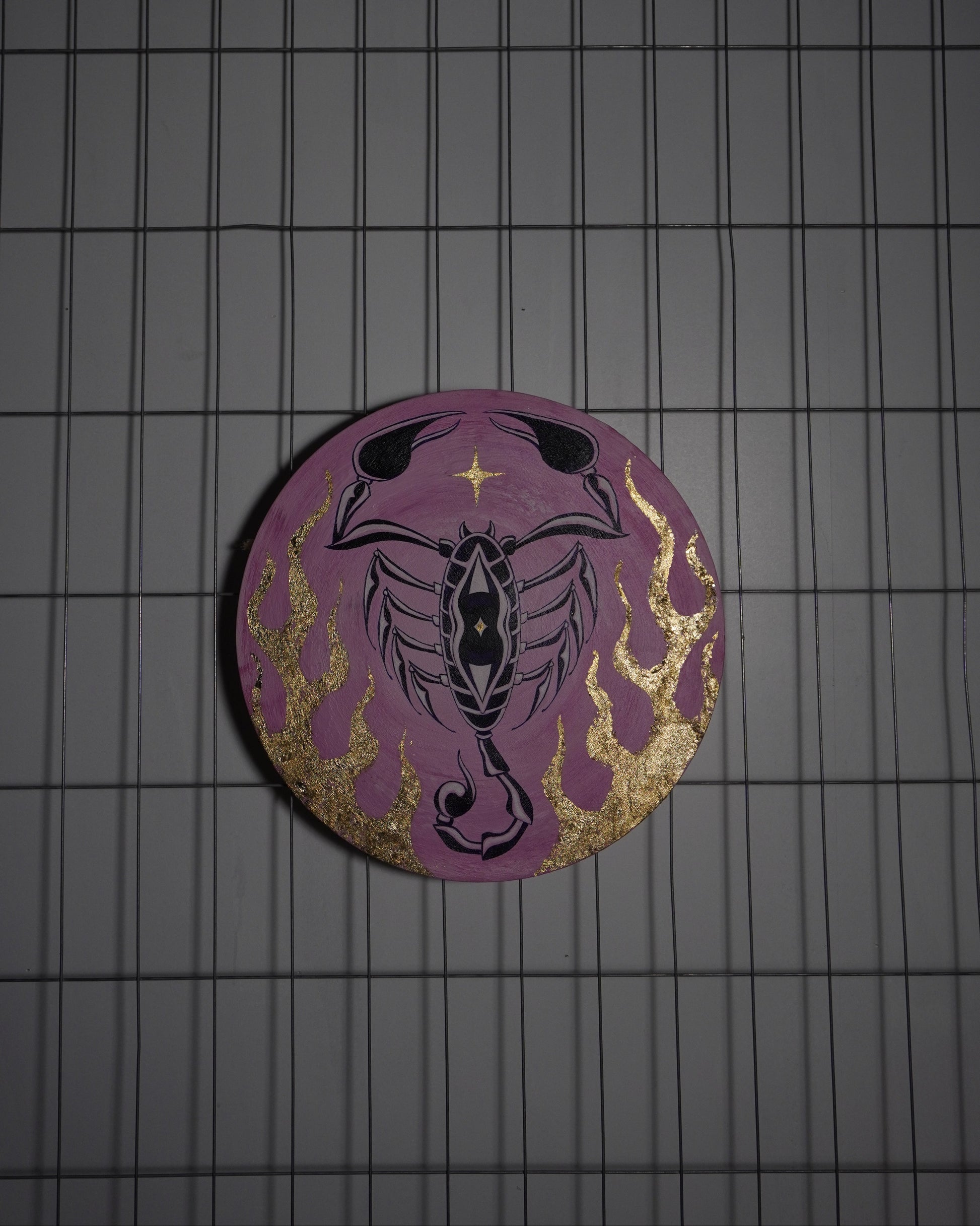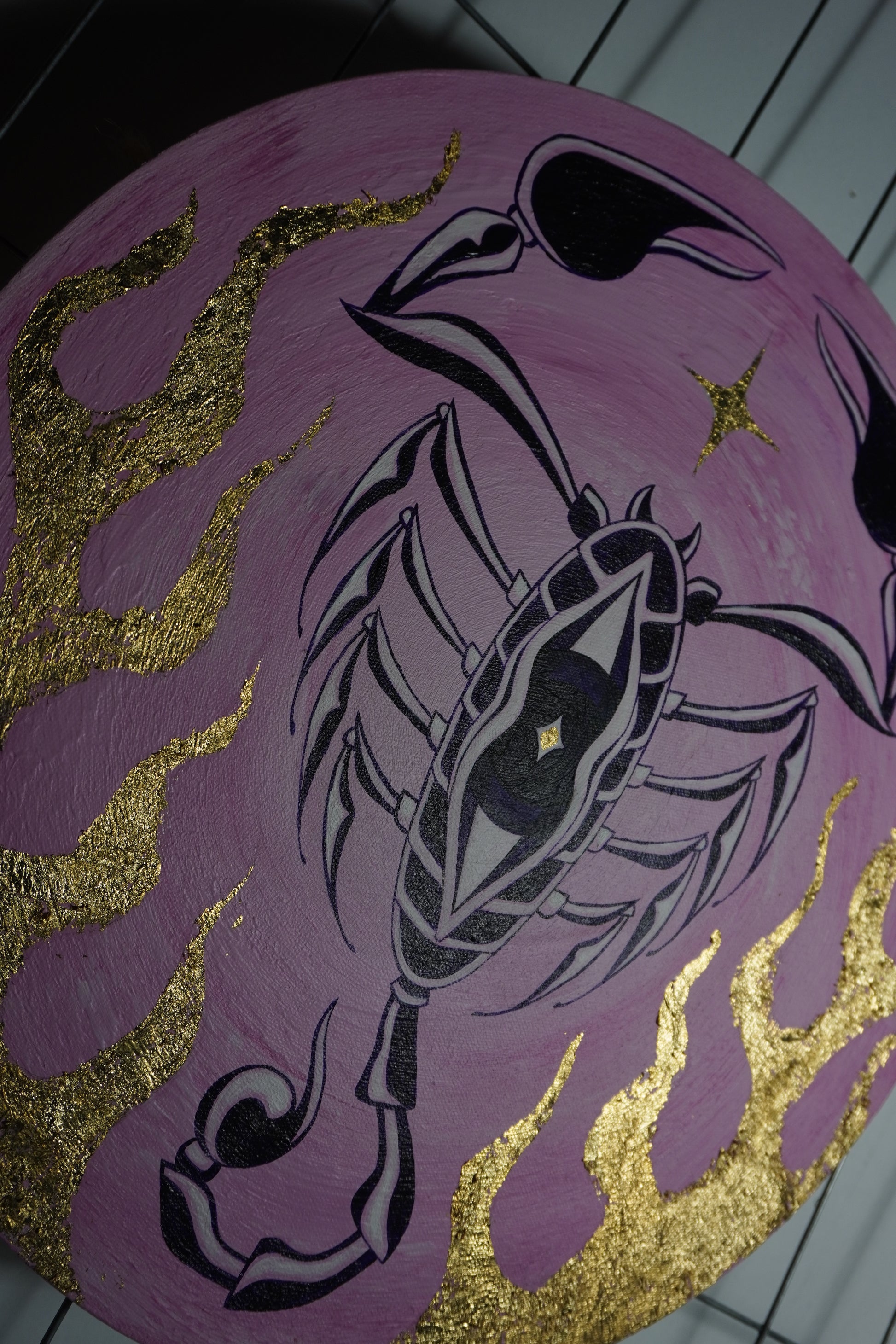 - Medium: Acrylic paint and gold leaf on stretched canvas